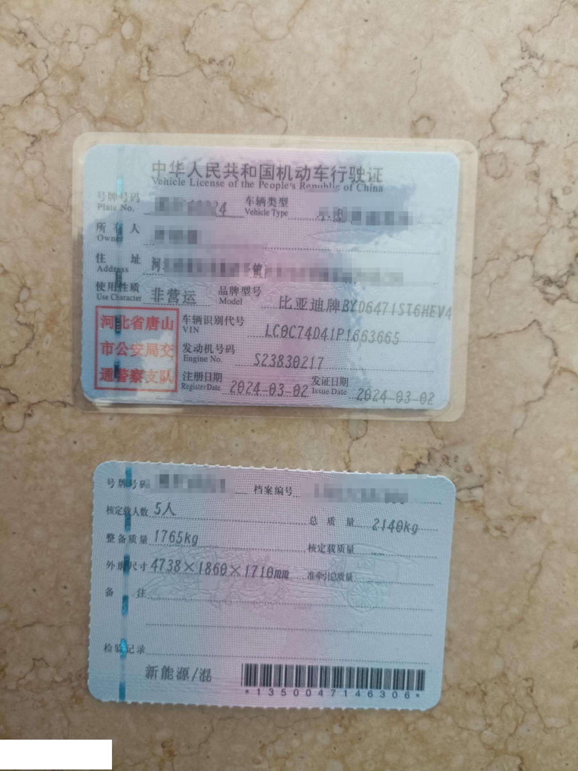 车牌号 冀****** 品牌 比亚迪