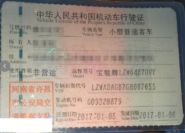 车辆归属地 河南省许昌市 车辆停放仓库 河南省许昌市