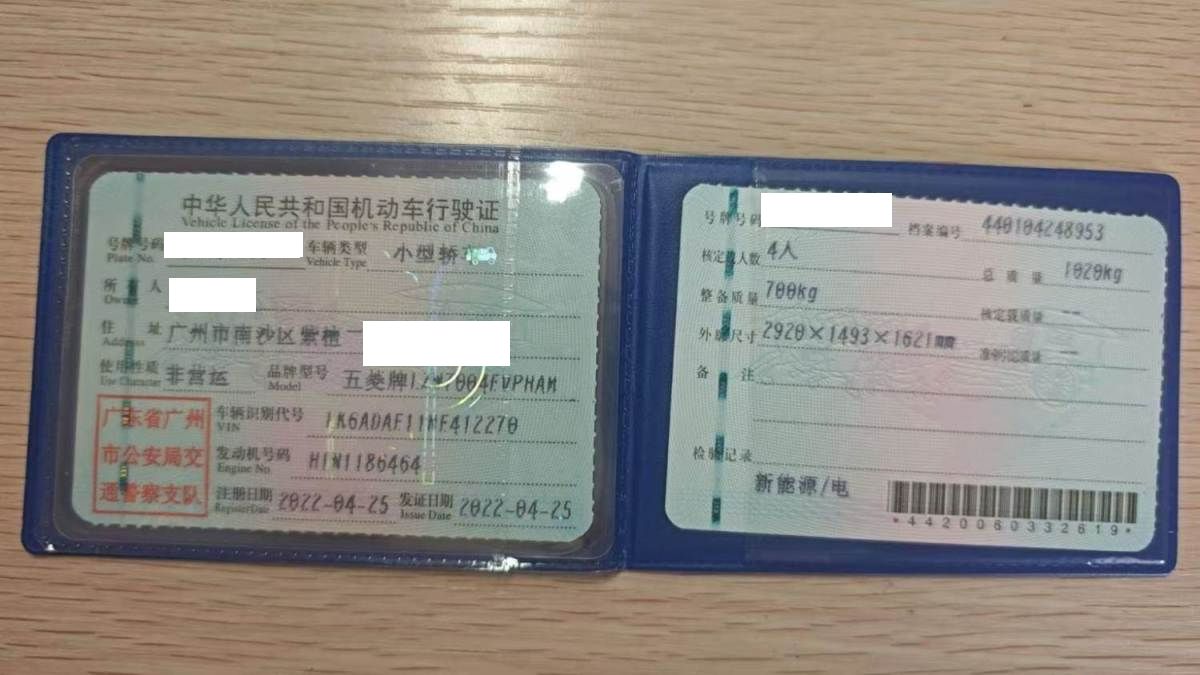 车牌号 粤****** 品牌 五菱