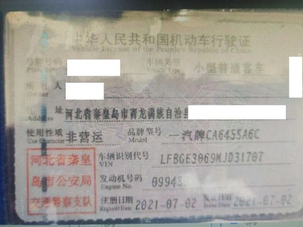 车辆归属地 河北省秦皇岛 车辆停放仓库 河北省秦皇岛市秦皇岛市