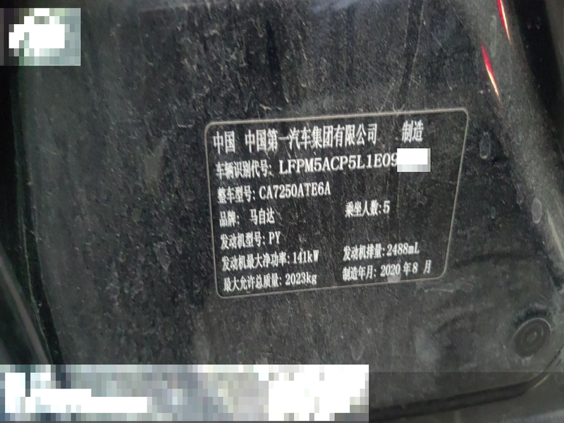 初次登记日期 2020-12-23 车辆名称 马自达 阿特兹