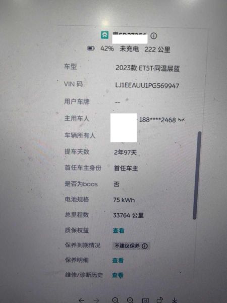 初次登记日期 2023-10-13 车辆名称 蔚来ET5T