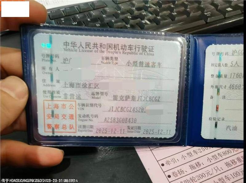 车辆归属地 上海市-上海市 车辆停放仓库 上海市-上海市-普陀区-长征镇上海和凌汽车服务有限公司旗舰店上海和凌雷克萨斯