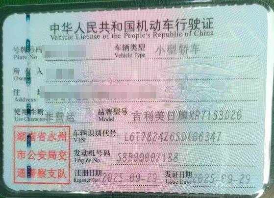 初次登记日期 2025-09-29 车辆名称 吉利汽车