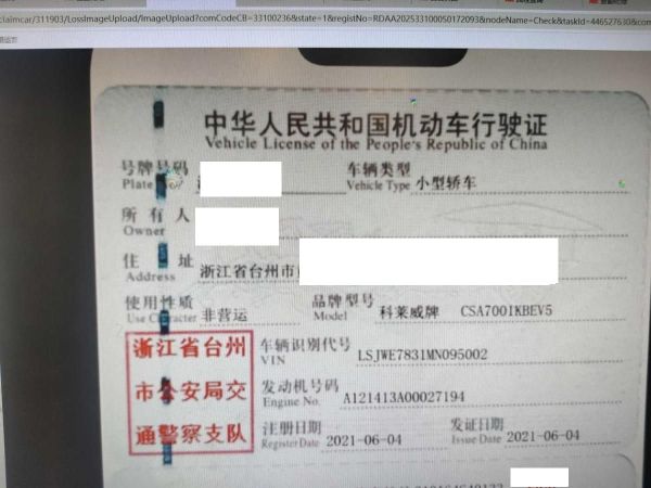 初次登记日期 2021-06-04 车辆名称 荣威 科莱威