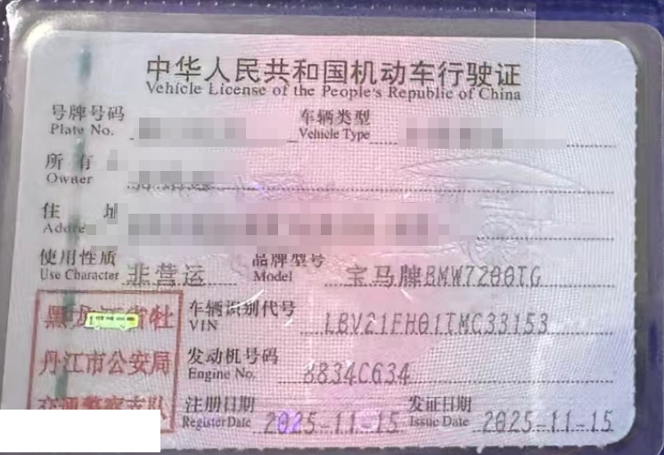 初次登记日期 2025-11-15 车辆名称 宝马3系