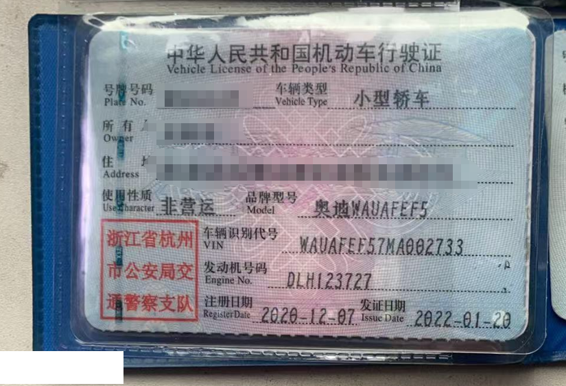 车牌号 浙****** 品牌 奥迪