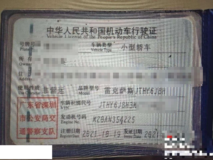 初次登记日期 2021-10-19 车辆名称 雷克萨斯