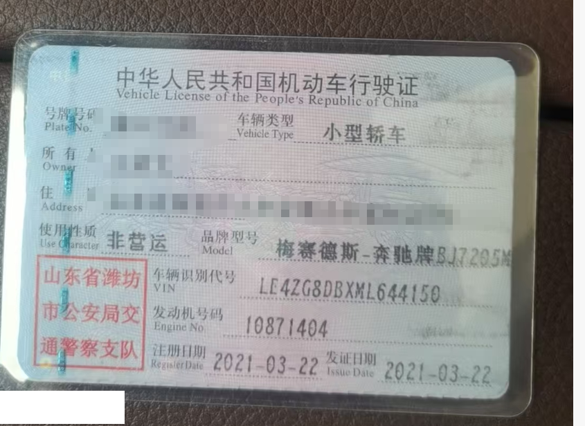 车牌号 鲁****** 品牌 奔驰