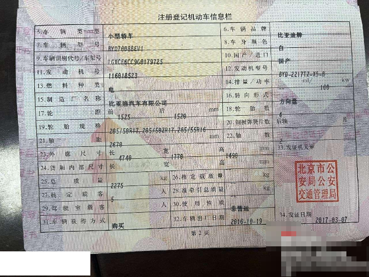 初次登记日期 2017-03-07 车辆名称 比亚迪 秦新能源