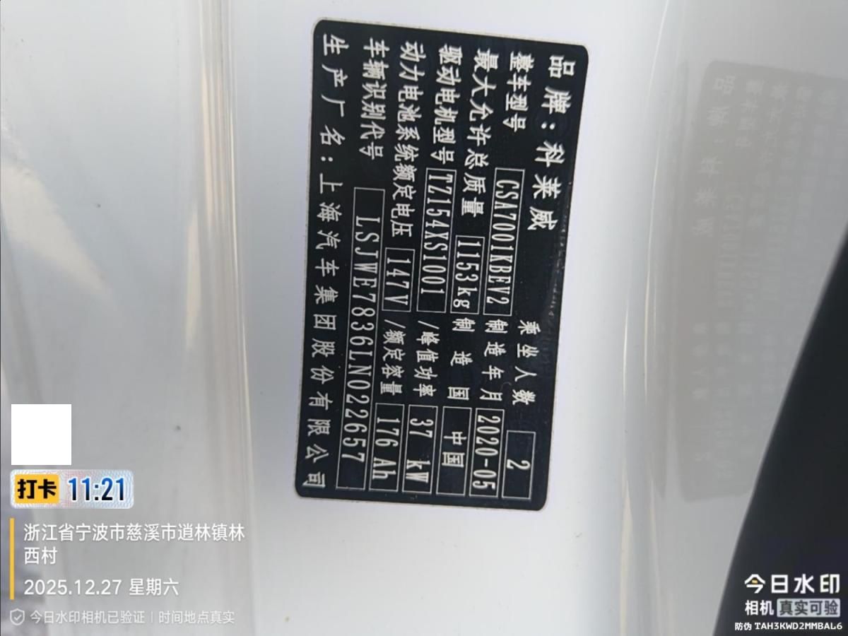 初次登记日期 2020-07-16 车辆名称 荣威 科莱威