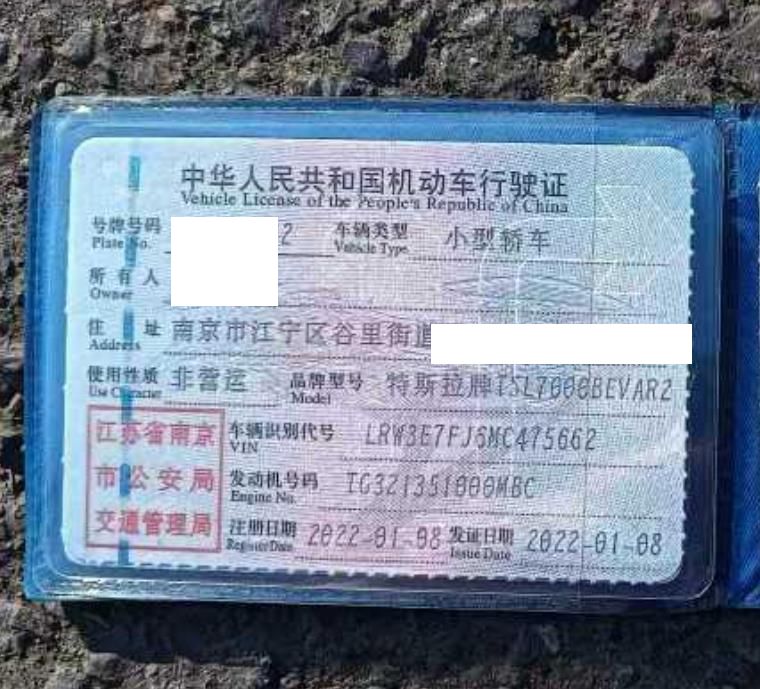 初次登记日期 2022-01-08 车辆名称 特斯拉 Model
