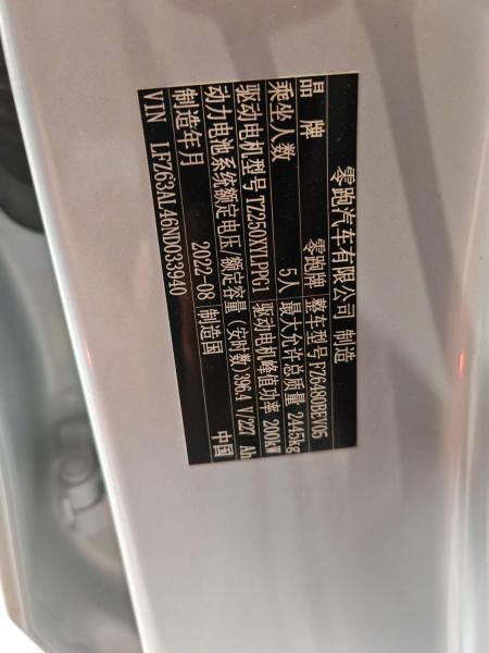 初次登记日期 2022-08-29 车辆名称 零跑汽车
