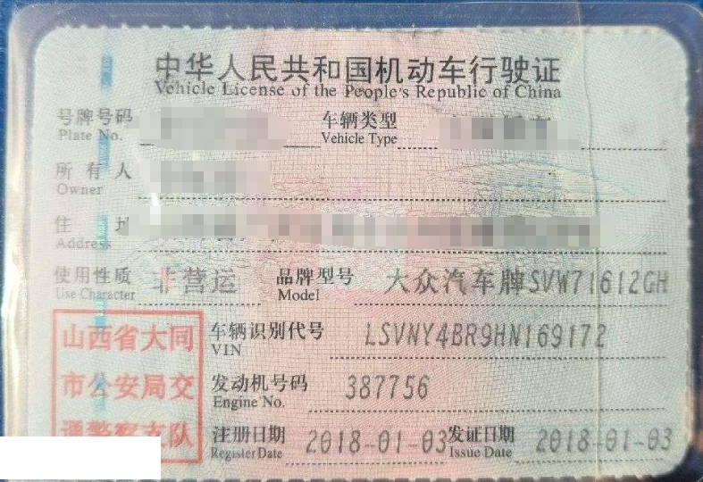 车辆归属地 山西省大同 车辆停放仓库 山西省大同