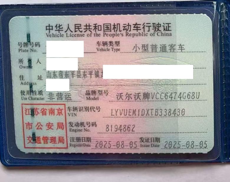 初次登记日期 2025-08-05 车辆名称 沃尔沃XC60