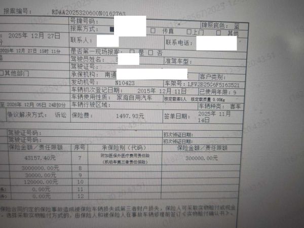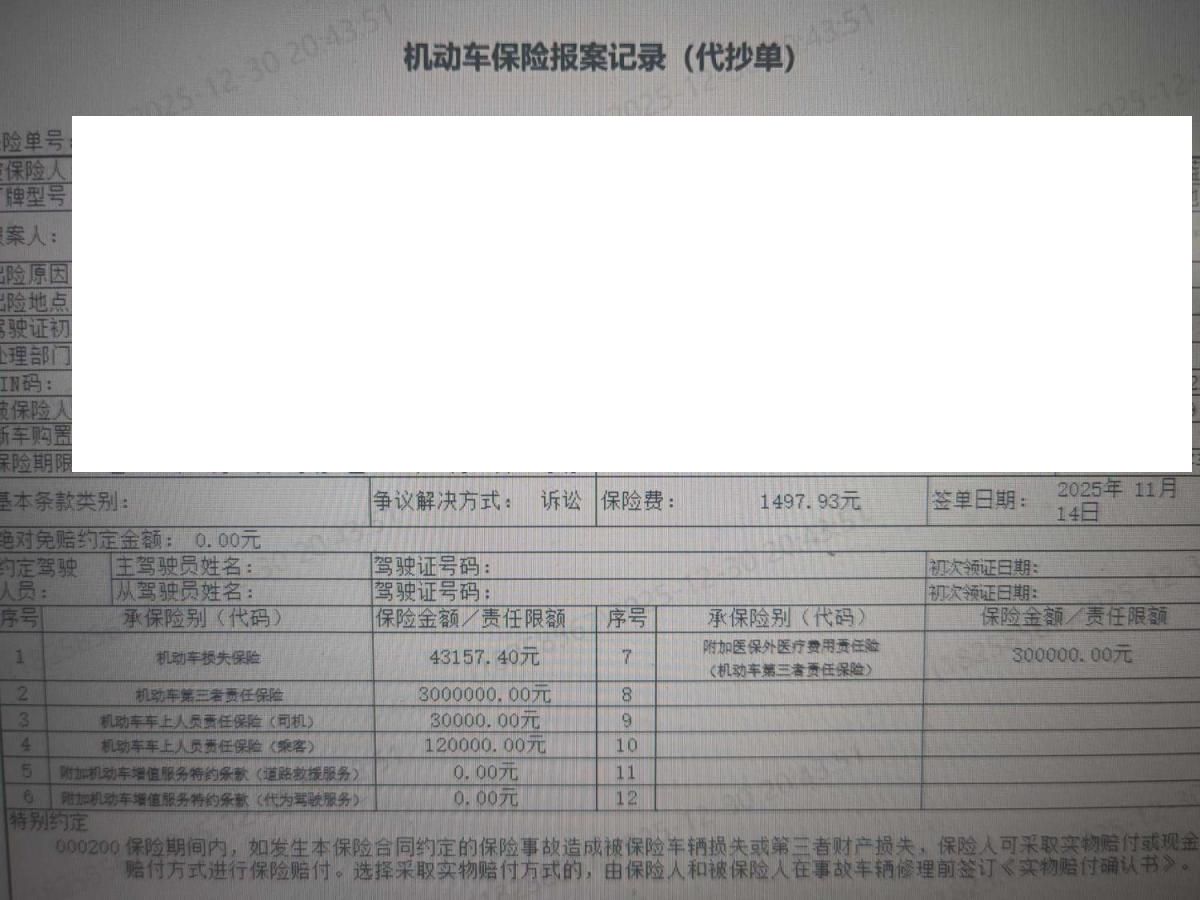 保险金额 ¥43157.4 预估维修金额 25000