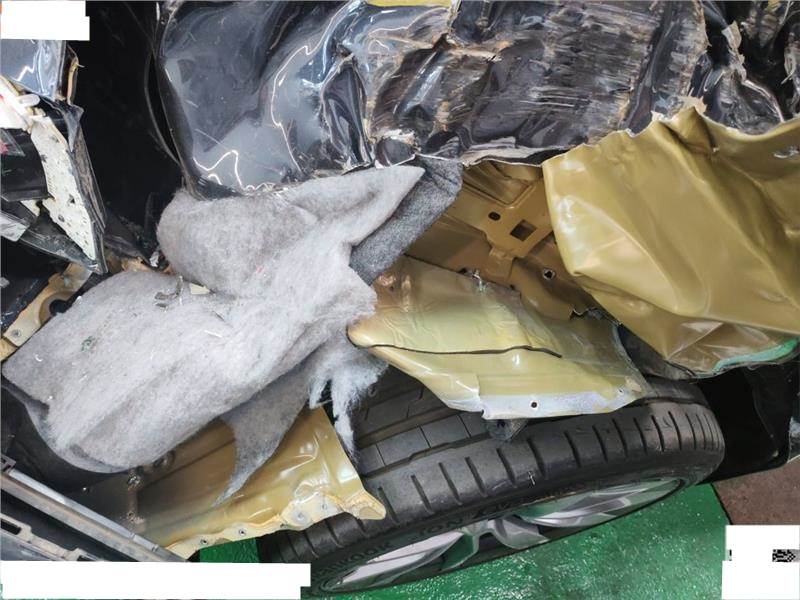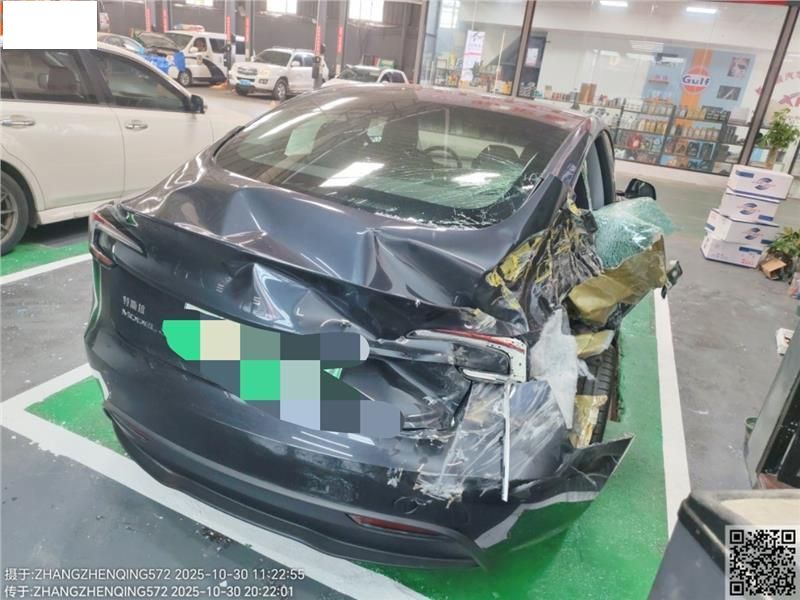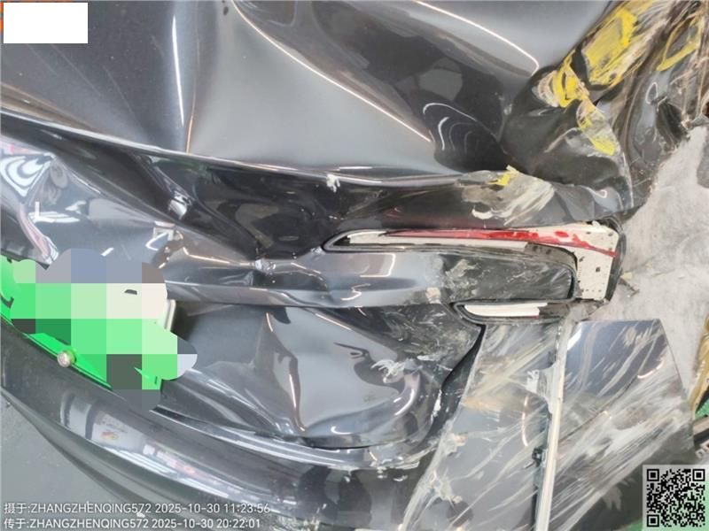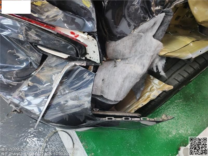 右后被追尾受损严重,轮胎为原车标配18寸轮毂钢圈