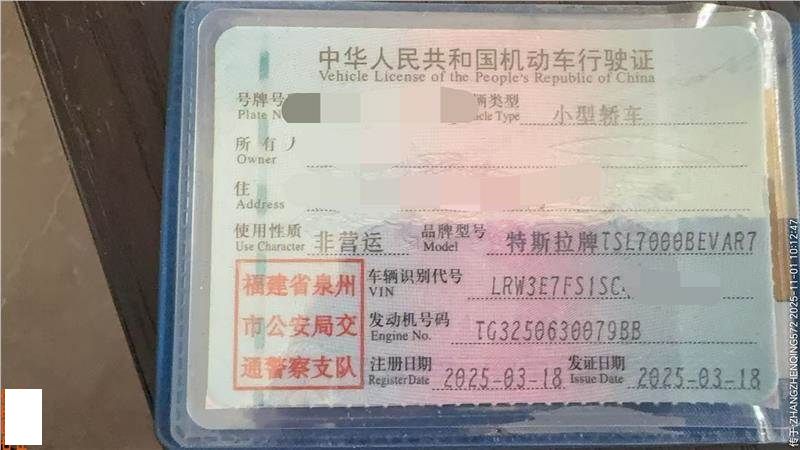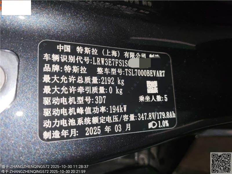 初次登记日期 2025-03-18 车辆名称 特斯拉 Model