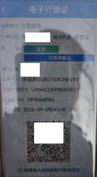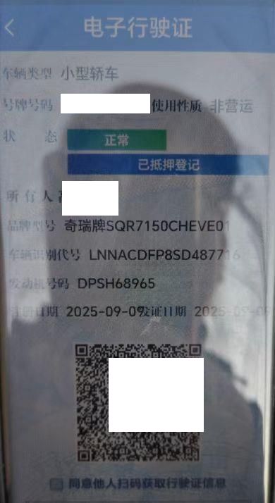 初次登记日期 2025-09-09 车辆名称 奇瑞风云
