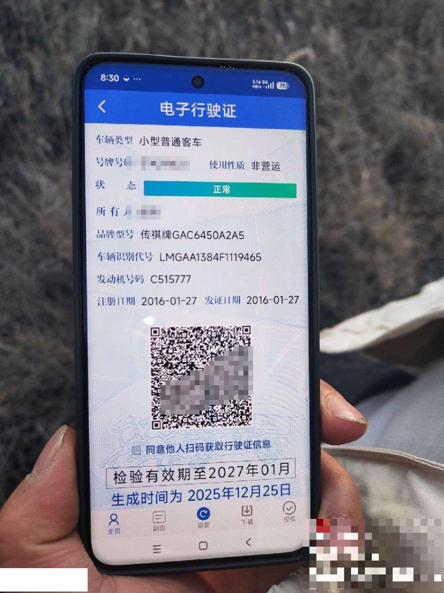初次登记日期 2016-01-27 车辆名称 广汽传祺 传祺GS4