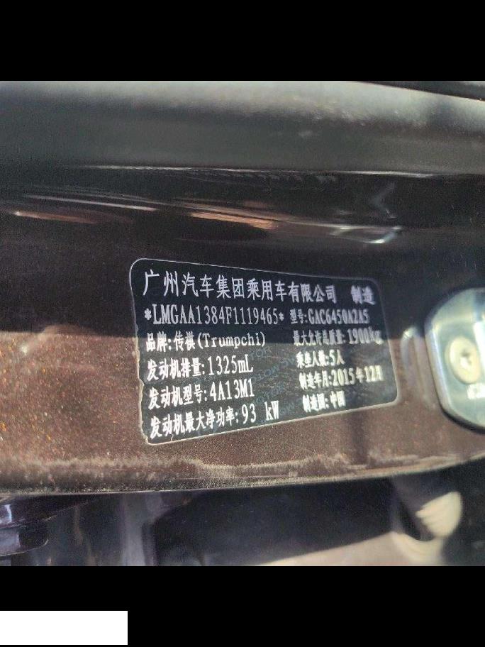 底盘号码 LMGAA1384F1119465 变速箱类型 手动