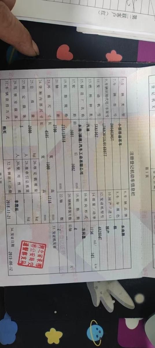 初次登记日期 2019-06-12 车辆名称 东南牌