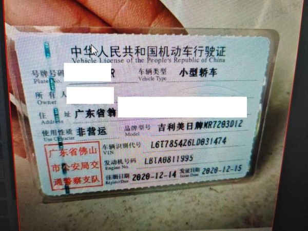 车牌号 粤****** 品牌 吉利