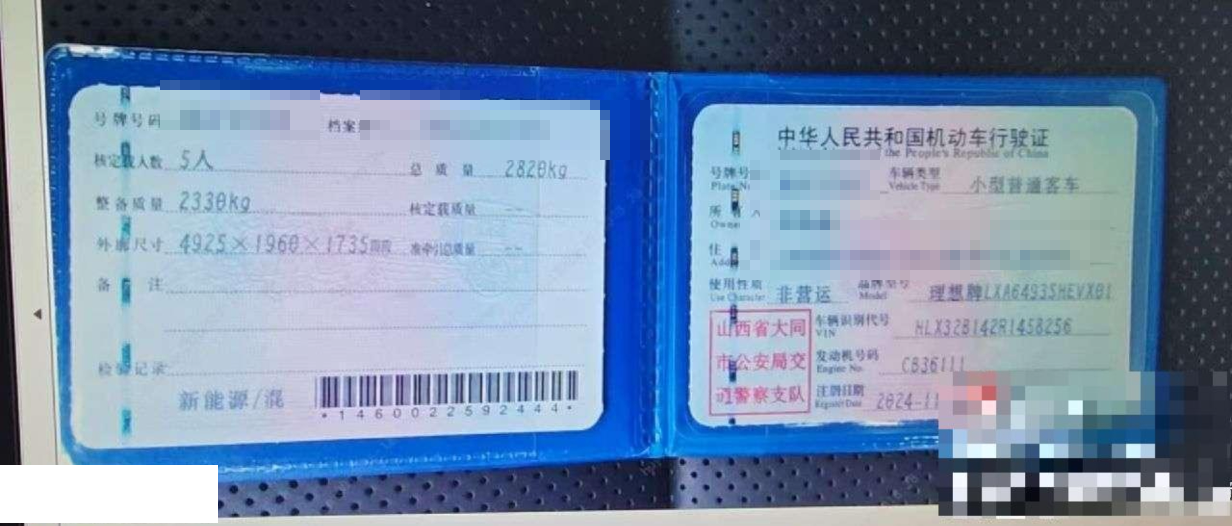 车牌号 晋****** 品牌 理想