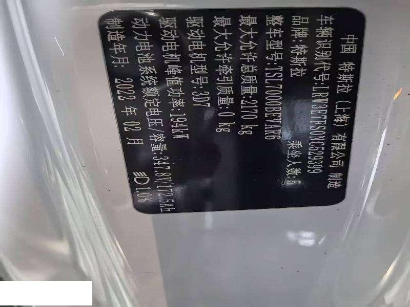 初次登记日期 2022-05-06 车辆名称 特斯拉 Model