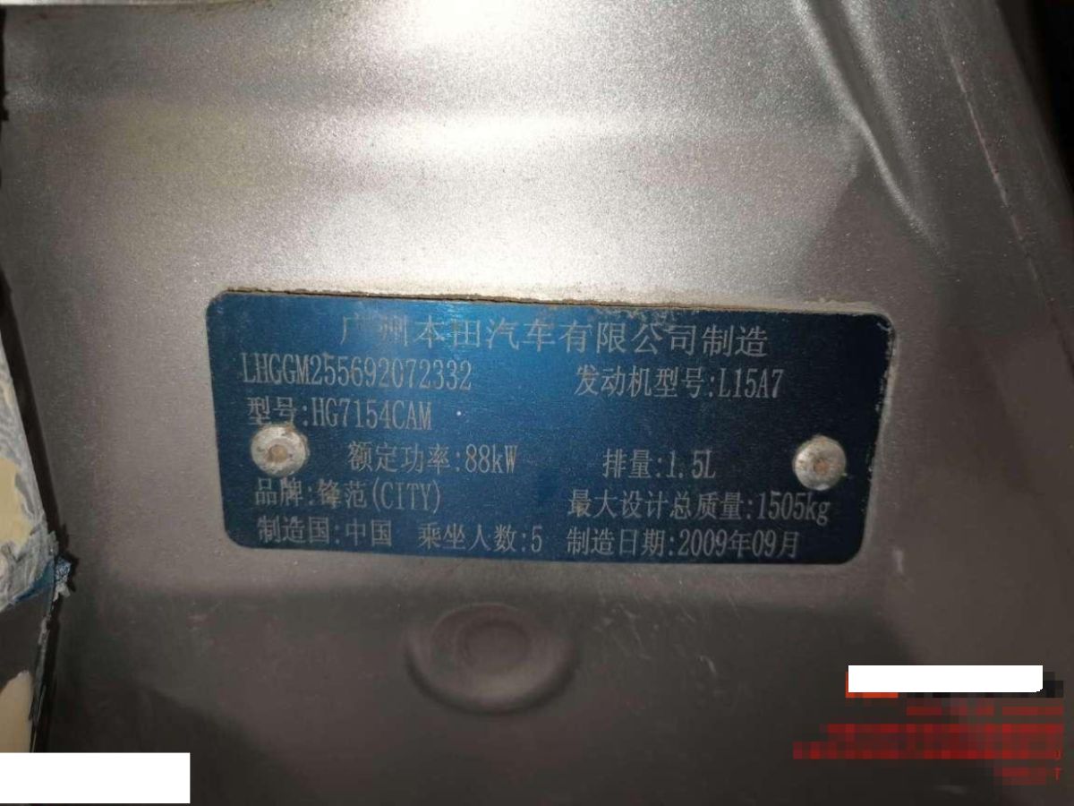 初次登记日期 2009-10-14 车辆名称 本田 锋范经典