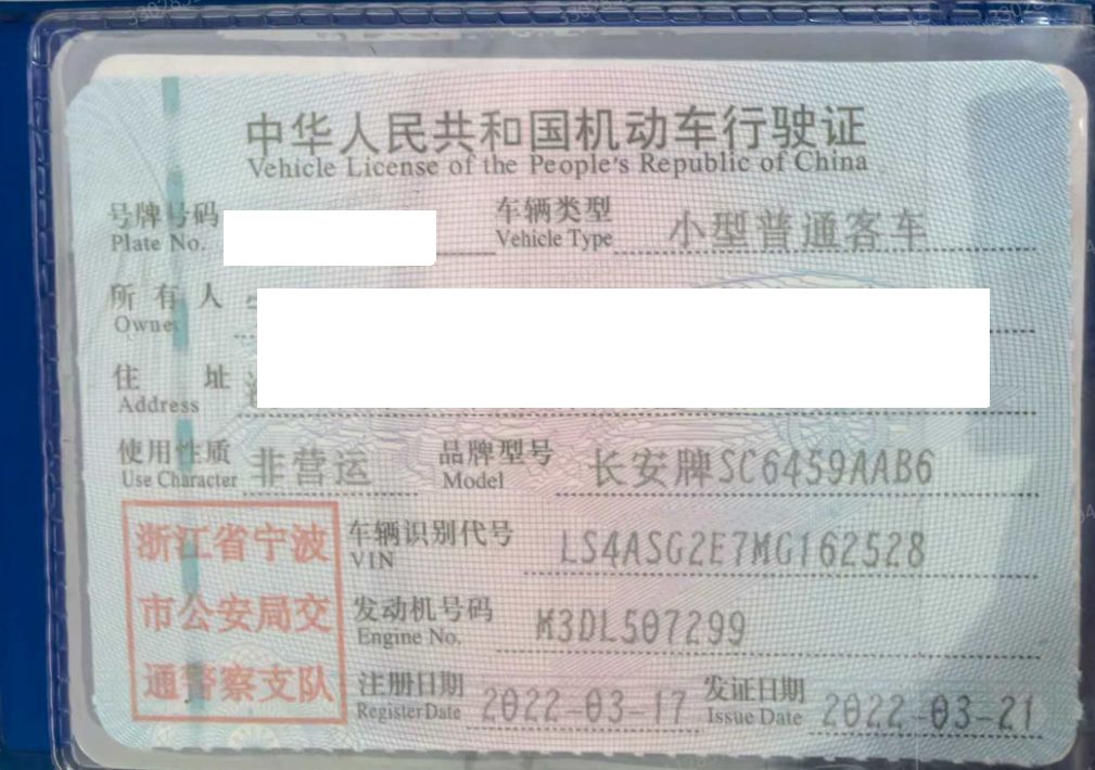 车辆归属地 浙江省宁波市 车辆停放仓库 浙江省宁波市海曙区