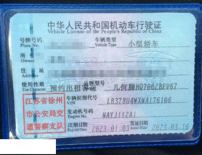 车辆归属地 江苏省徐州 车辆停放仓库 江苏省徐州