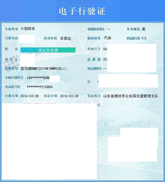 初次登记日期 2016-03-28 车辆名称 宝马5系