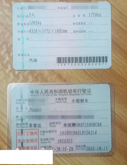 车牌号 赣****** 品牌 本田