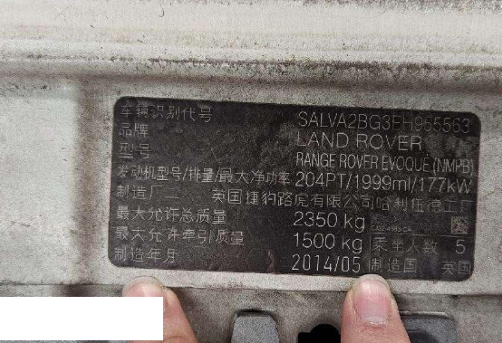 初次登记日期 2014-09-01 车辆名称 路虎 揽胜极光(进口)