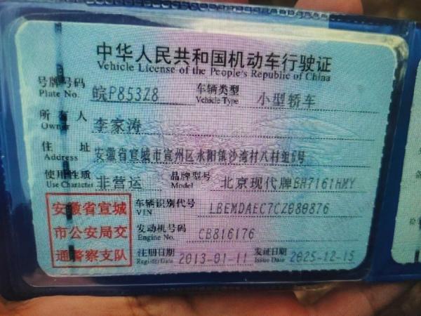 车牌号 皖****** 品牌 现代