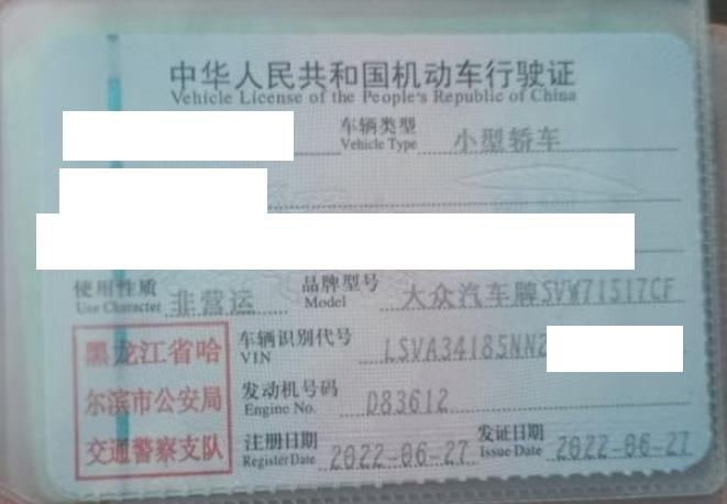 车辆归属地 黑龙江省哈尔滨 车辆停放仓库 黑龙江省哈尔滨