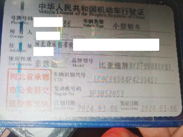 车牌号 冀****** 品牌 比亚迪