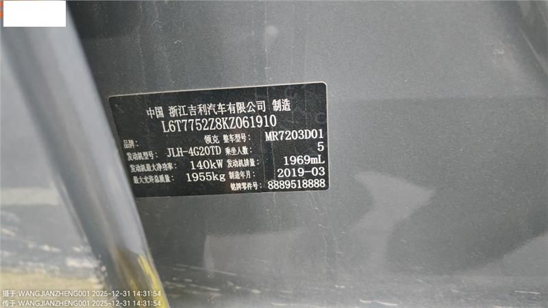 底盘号码 L6T7752Z8KZ061910 变速箱类型 手自一体