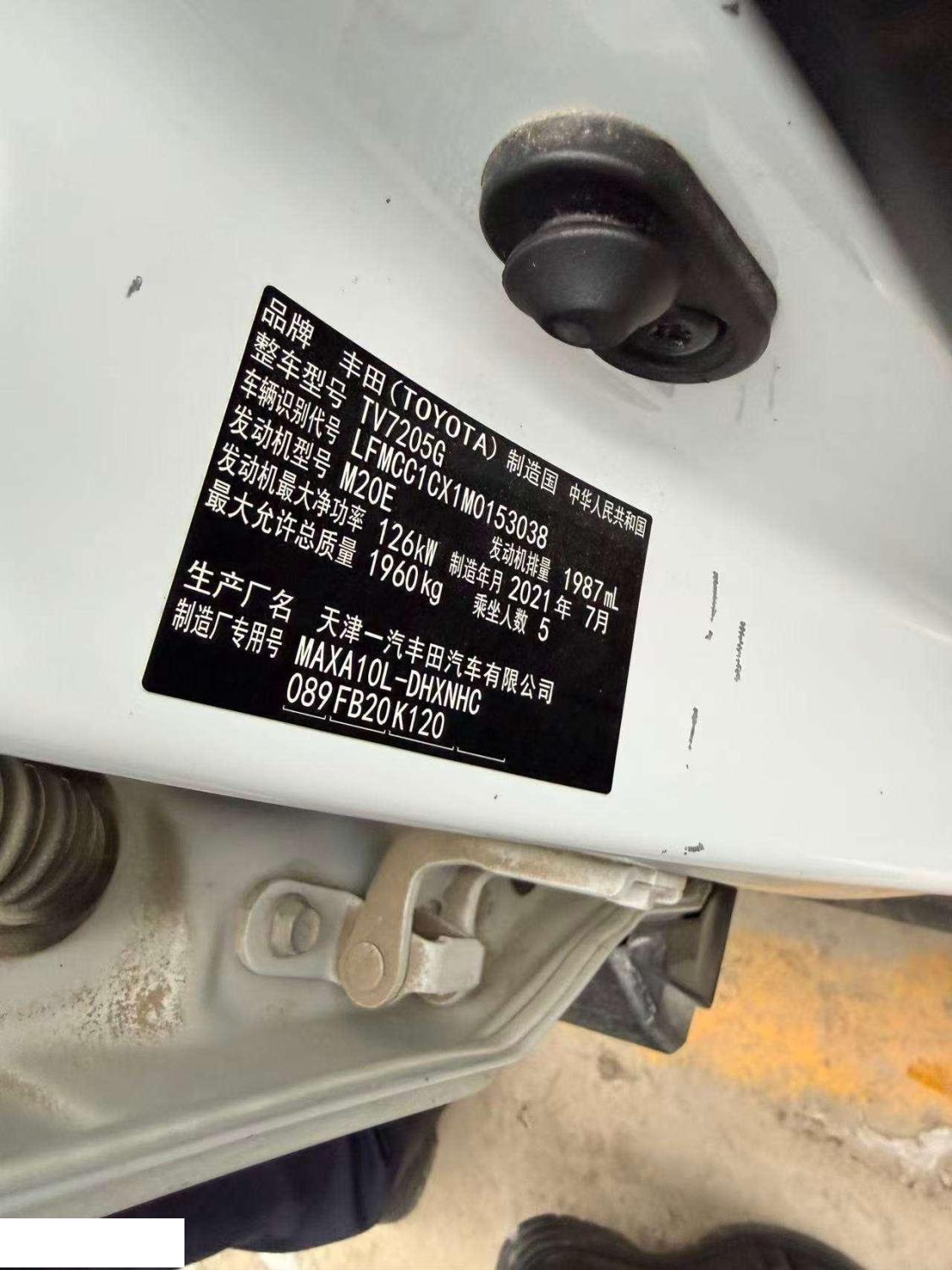 初次登记日期 2021-08-17 车辆名称 丰田 奕泽IZOA