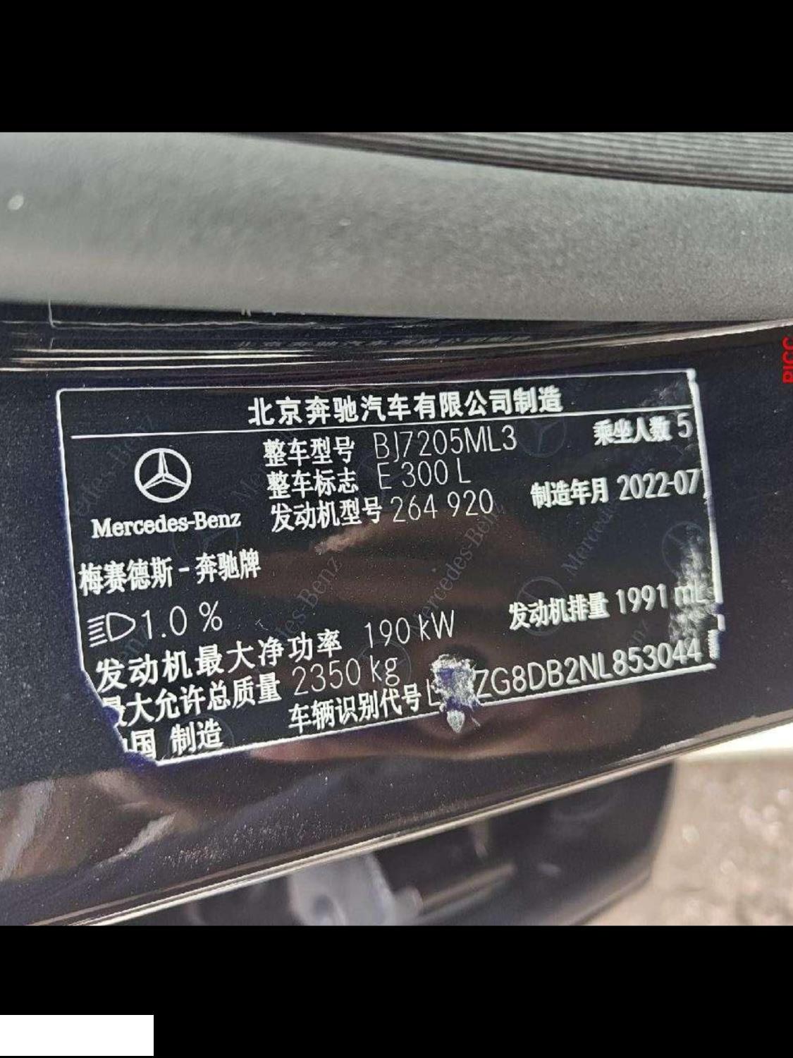 初次登记日期 2022-11-11 车辆名称 奔驰E级
