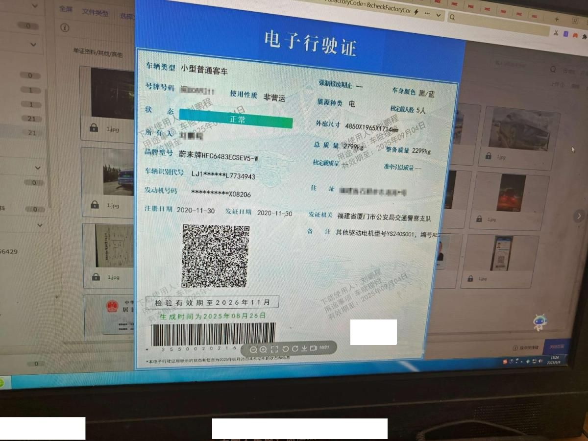 初次登记日期 2020-11-30 车辆名称 蔚来牌