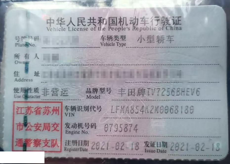 车辆归属地 江苏省苏州 车辆停放仓库 江苏省苏州