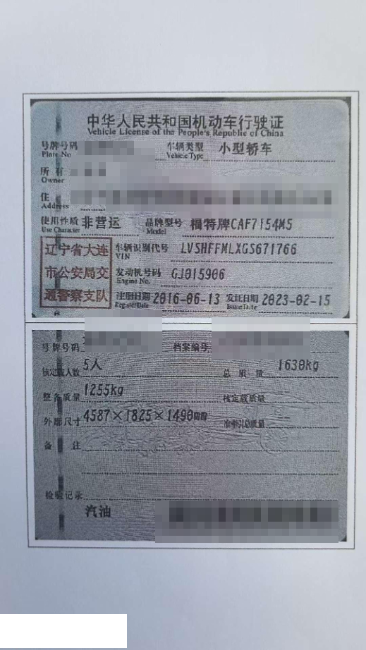 车辆归属地 辽宁省大连 车辆停放仓库 辽宁省大连