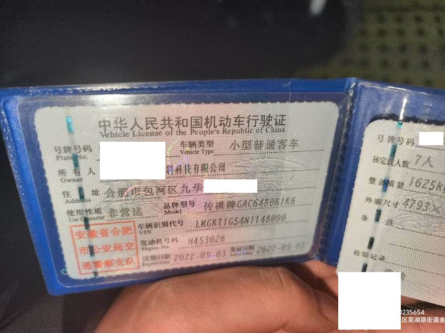 车牌号 皖****** 品牌 传祺