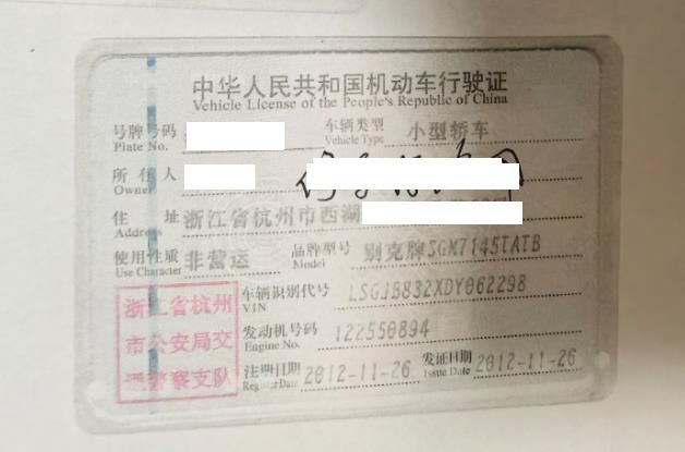 车牌号 浙****** 品牌 别克