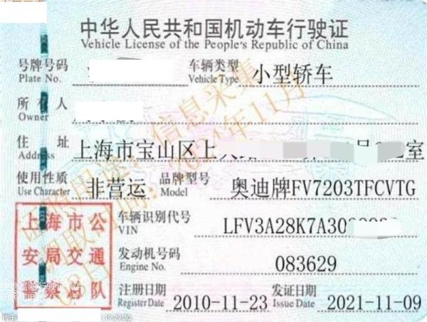 车牌号 沪****** 品牌 奥迪
