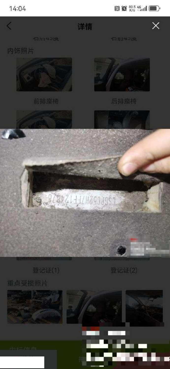 报价有效期60天 根据所给照片,自行判断钢印号是否受损 该车已全部拆检 5年以上车辆报价后不得以二次事故为由提出议价或退车弃标。 需提供报废证明,未提供则收取1000元平台使用费!