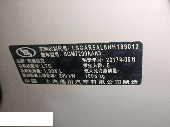 初次登记日期 2017-07-20 车辆名称 凯迪拉克