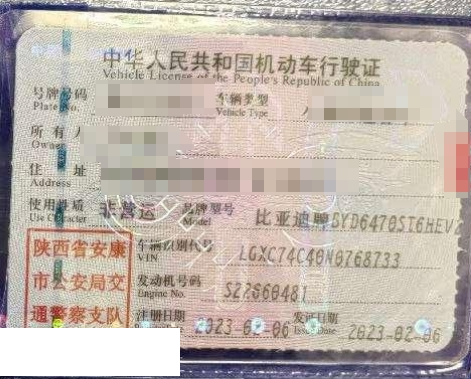 车牌号 陕****** 品牌 比亚迪